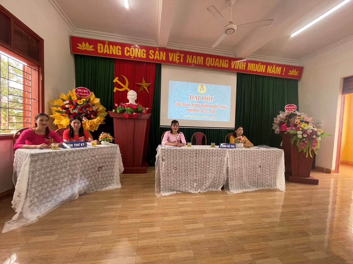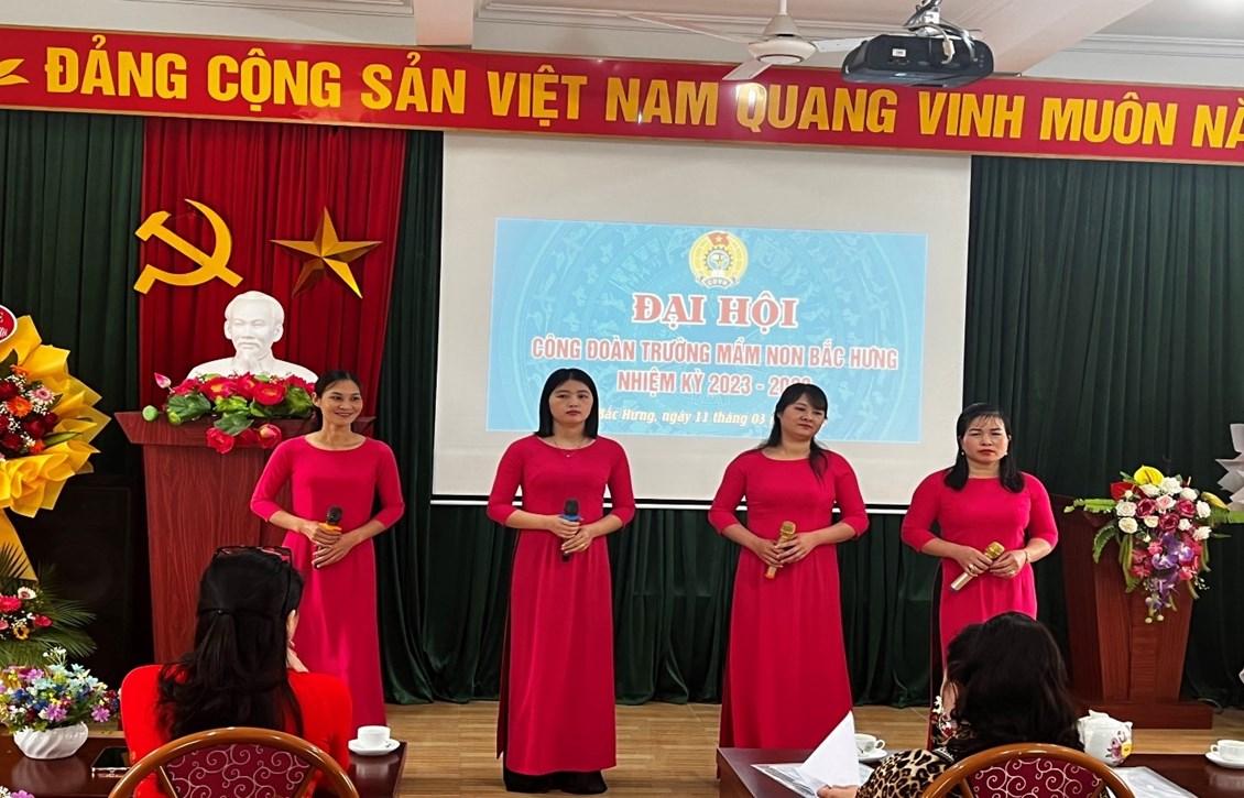 Hòa chung với khí thế thi đua sổi nổi của công nhân, viên chức, lao động và đoàn viên công đoàn hướng về đại hội Công đoàn các cấp, tiến tới Đại hội công đoàn huyện lần thứ XI. Sáng ngày 11/03/2023 Công đoàn Trường mầm non Bắc Hưng long trọng tổ chức Đại hội Công đoàn nhiệm kỳ 2023-2028.