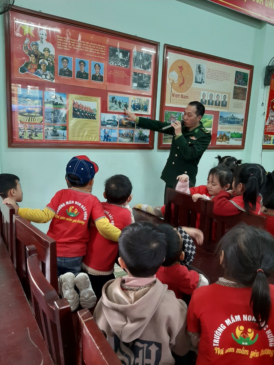 Sau khi các chú tập luyện xong cô và trò còn được đi xem phòng triển lãm tư liệu của các chiến sĩ đôn biên phòng đặc biệt các cháu được nghe các chú bộ đội trò chuyện về bức tượng "Bác Hồ với bộ đội biên phòng", Trò chuyện về "Gương điều lệnh" và thăm quan các khu vực của đồn biên phòng, các cháu được trải nghiệm trồng và chăm sóc rau, và tập thể dục cùng các chú bộ đội.