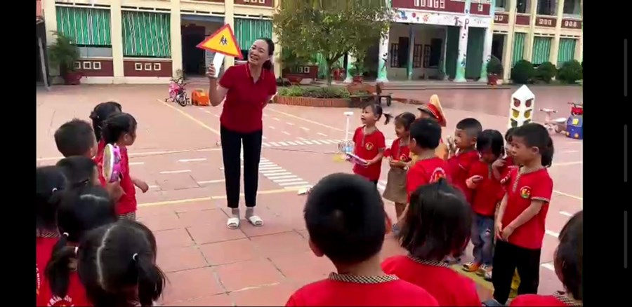Để cung cấp cho trẻ kiến thức về các kỹ năng tham gia giao thông, hằng ngày giáo viên cho trẻ đọc thơ, kể chuyện, học bài hát về giao thông với những câu từ đơn giản, dễ nhớ. Qua đó, trẻ vừa có thể dễ dàng thuộc và nhanh chóng áp dụng, khi gặp tình huống sẽ biết phản xạ theo đúng như những gì đã được học ở lớp.