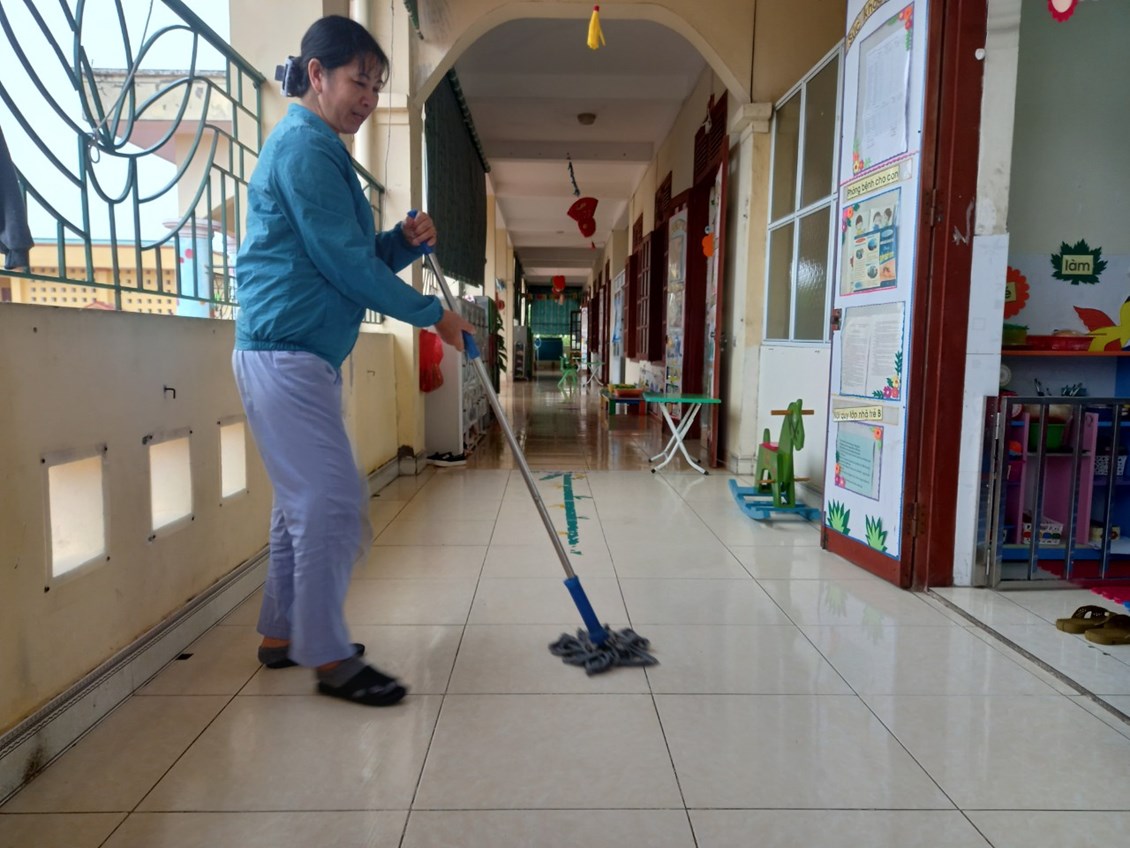Hình ảnh giáo viên lau dọn vệ sinh trường lớp sạch sẽ