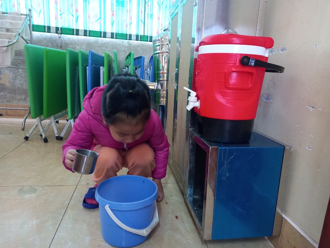 - Đồ dùng ăn ngủ như: Khăn mặt, ca cốc được nhân viên luộc bằng nước sôi hàng ngày. Tuyệt đối thực hiện nguyên tắc không cho trẻ sử dụng chung đồ dùng cá nhân như khăn, cốc, bát thìa...