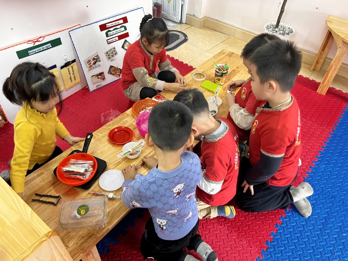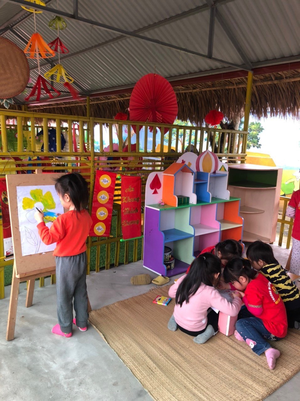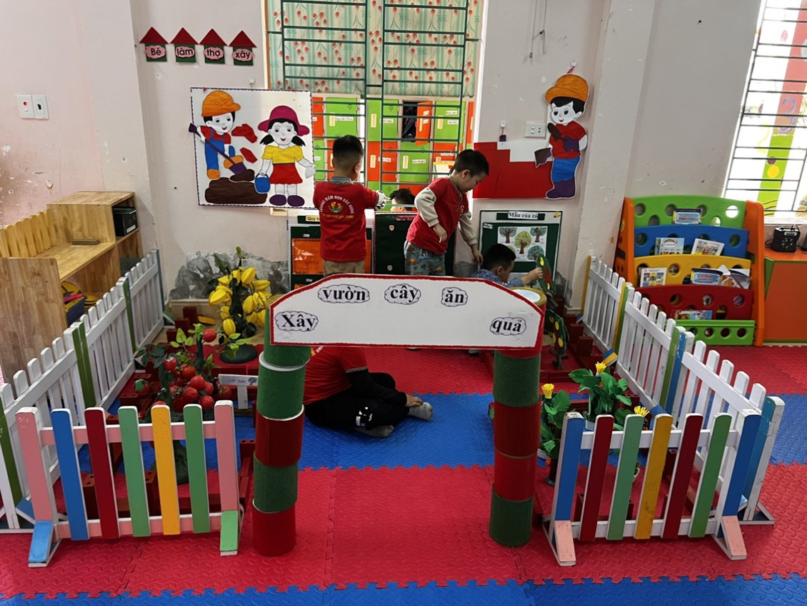 Ngoài ra, trẻ còn được học tập vui chơi thông qua hoạt động góc. Tại các góc chơi giúp các con tái tạo lại những gì đã được chứng kiến trong cuộc sống đời thường qua đó trẻ tái hiện lại được các vai chơi theo các chủ đề nhằm tạo cho trẻ những kiến thức, kỹ năng cần thiết.