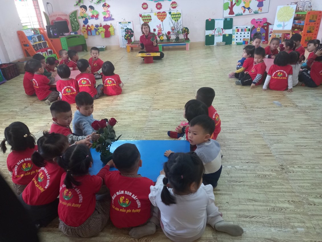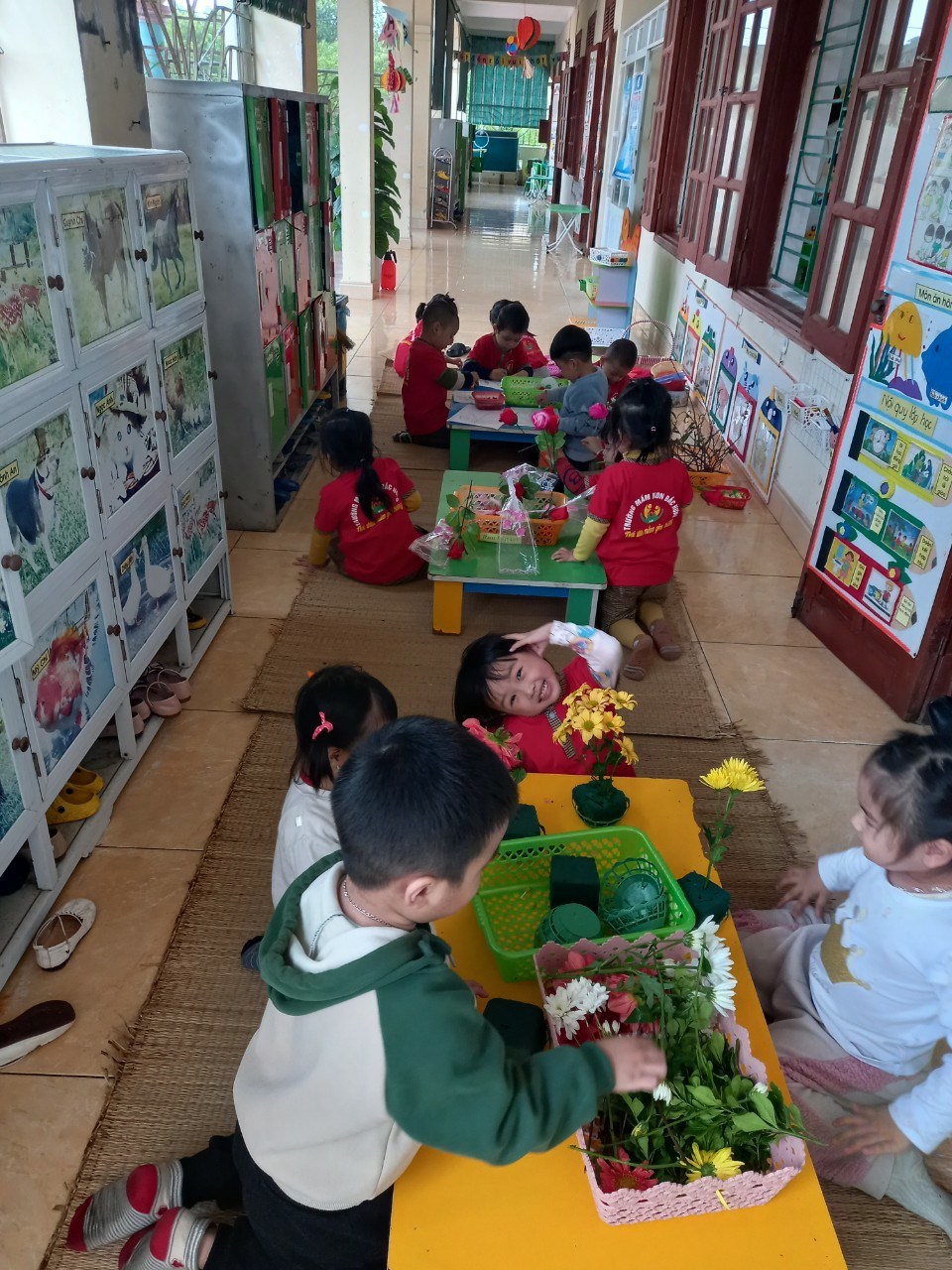 Hình ảnh cô và trẻ lớp 3TB khám phá hoa hồng, hoa cúc