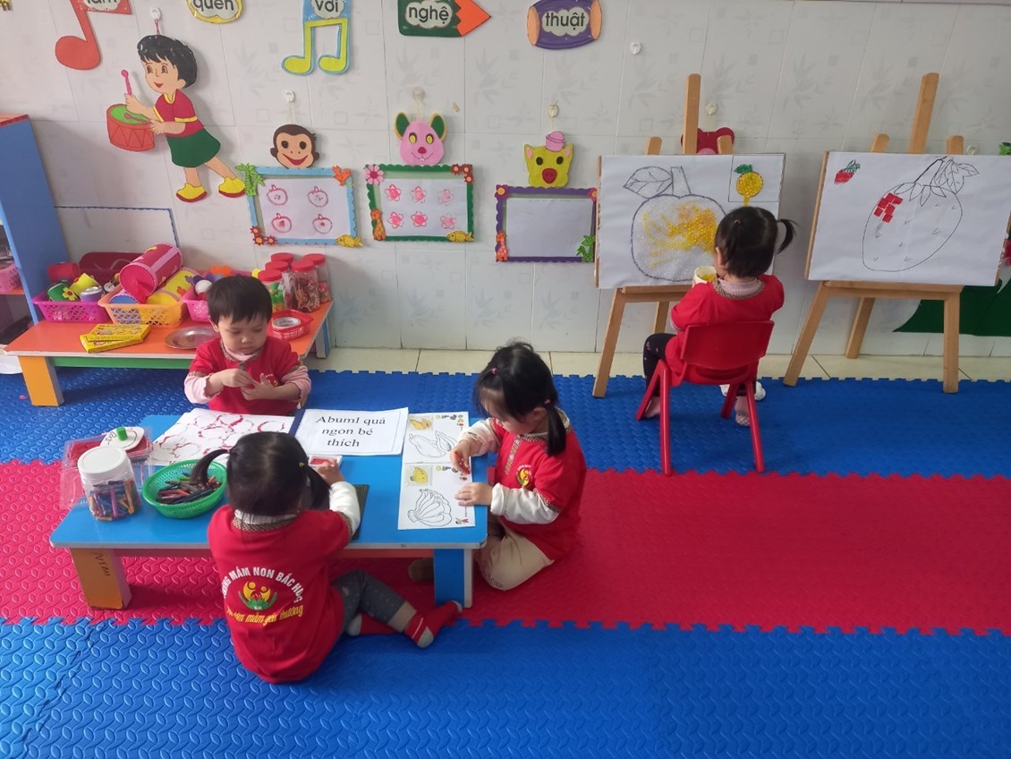 Hình ảnh trẻ chơi ở góc nghệ thuật