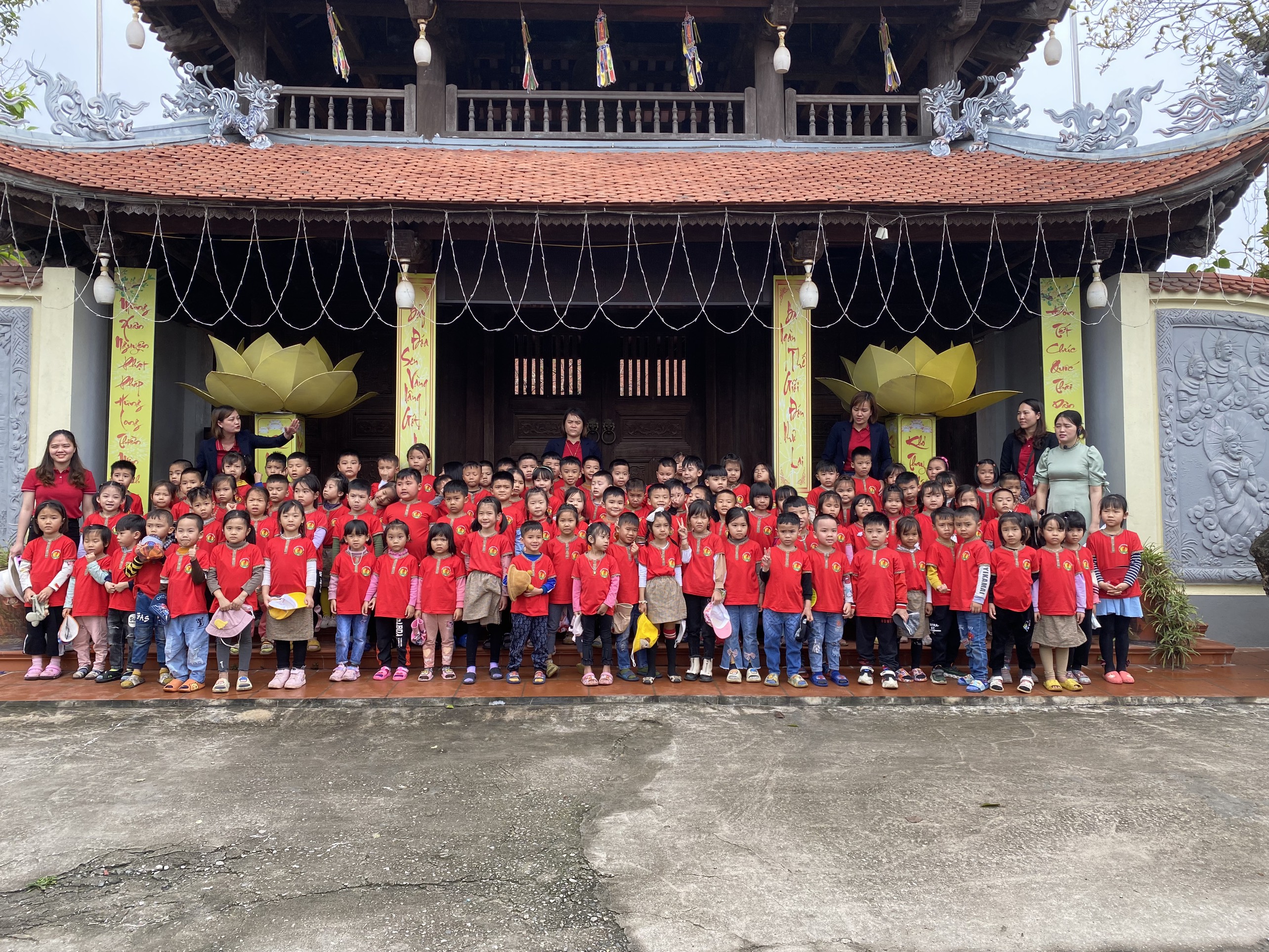 Nhận thức được tầm quan trọng của việc cho trẻ đi trải nghiệm và để thực hiện tốt nhiệm vụ năm học 2021- 2022 Trường MN Bắc Hưng đã tổ chức cho các con đi thăm quan Đình, Đền Chùa Xuân Úc. Buổi sáng đầu xuân, khác hẳn với không khí mọi ngày ở trường. Các bé ai nấy đều rạng rỡ, vui mừng, háo hức với chuyến đi sắp tới. Niềm vui của các bạn ấy còn được nhân lên gấp bội khi thời tiết ngày hôm đó cũng rất ủng hộ cho chuyến đi. Đến giờ xuất phát, các bạn nhỏ tập trung tại sân trường xếp thành hàng ngay ngắn để lên ô tô.