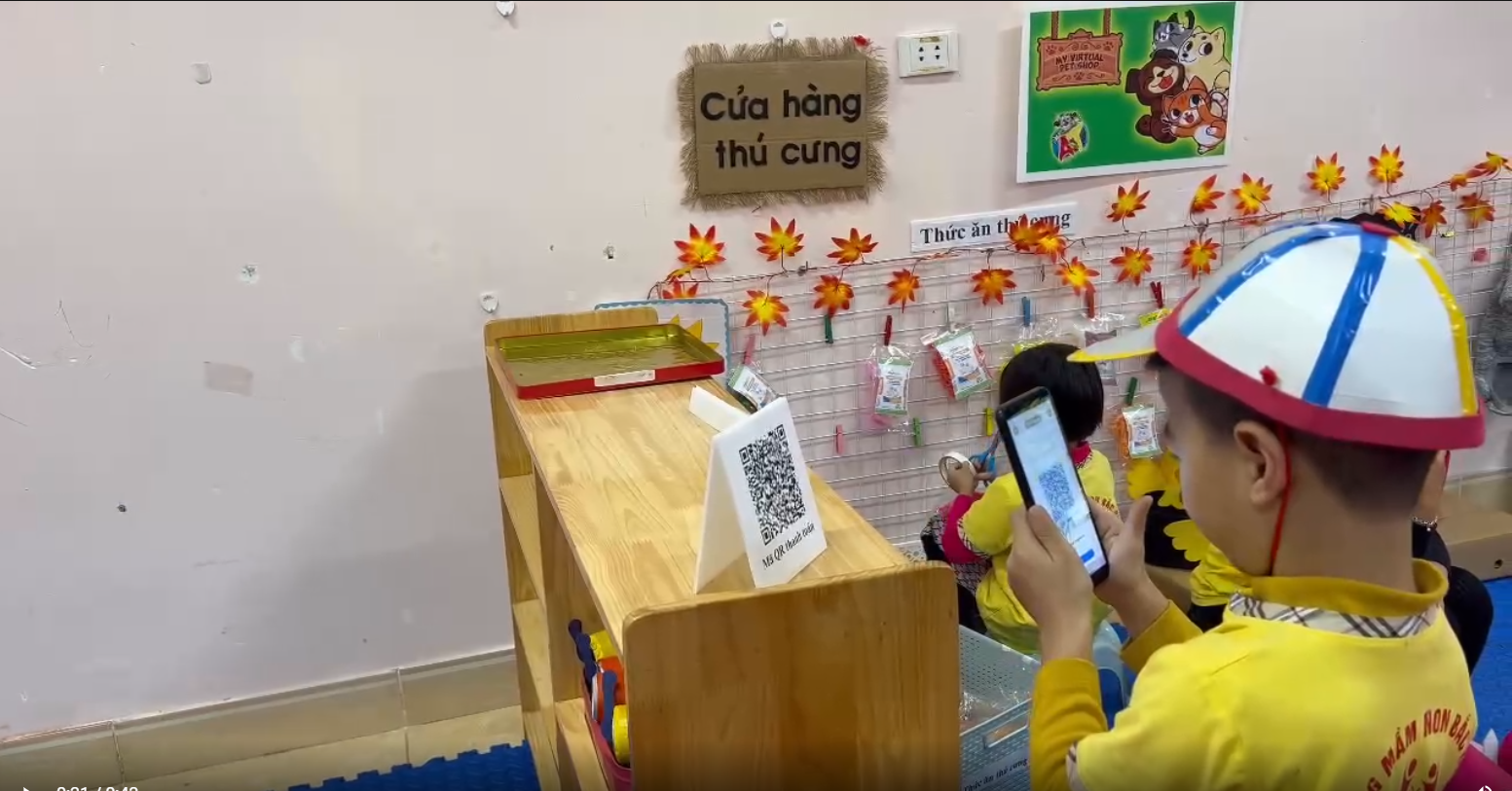 Ngoài ra giáo viên còn tạo ra các mã quét QR ở các góc chơi và bảng tuyên truyền để trao đổi với phụ huynh về các bài học của các con ở trên lớp